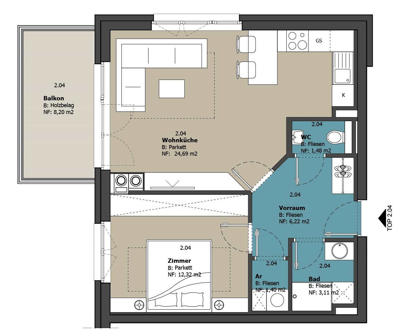 - Vorraum : 8,49 м²